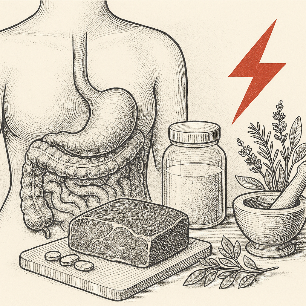 Organ meats offer concentrated, ready-to-use nutrition. Beef liver supports energy and focus with bioavailable vitamins and heme iron, while beef intestine contributes collagen peptides and minerals that strengthen gut comfort. Combined with herbs such as slippery elm and yarrow, plus absorption enhancers like black pepper extract, these nutrients work together to support digestion and energy through perimenopause.