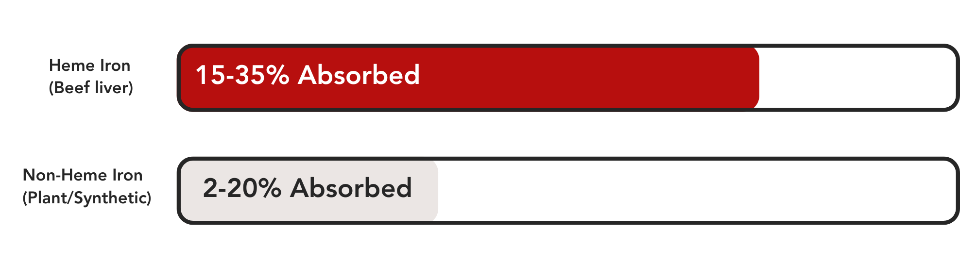 Heme iron from grass-fed beef organs is the gold standard for supporting healthy ferritin levels and sustained energy.
